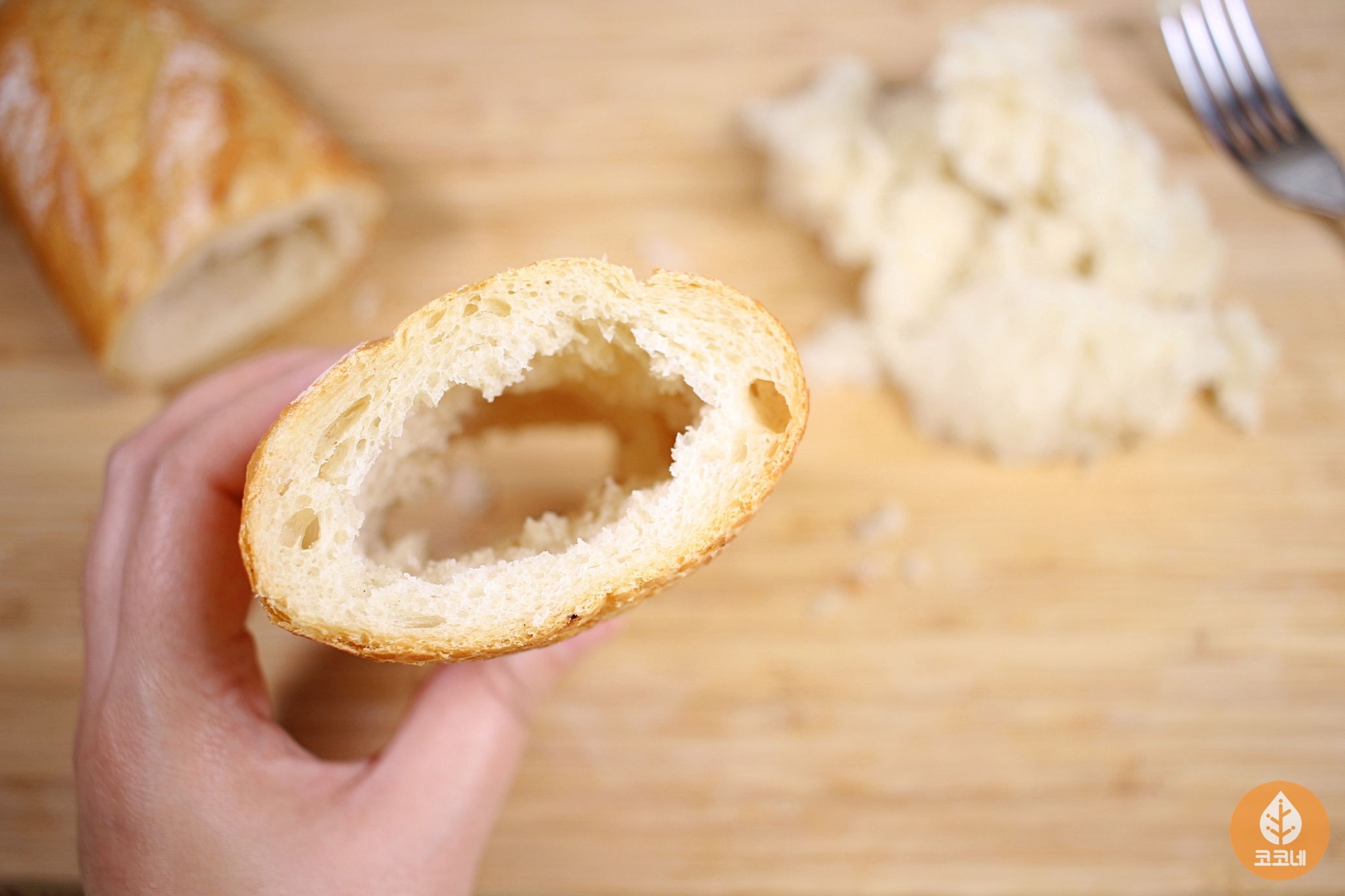 바게트빵은 속을 파내서 뻥- 뚫어주시고요.