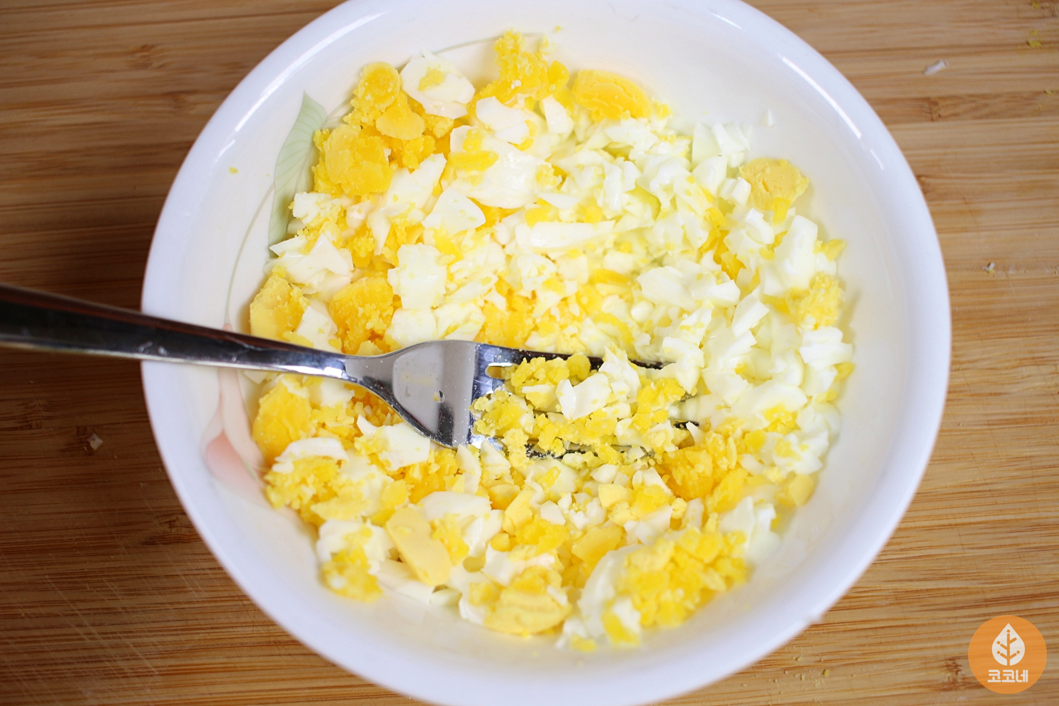 빈 속을 감자샐러드로 꽉 채워주시면 돼요.