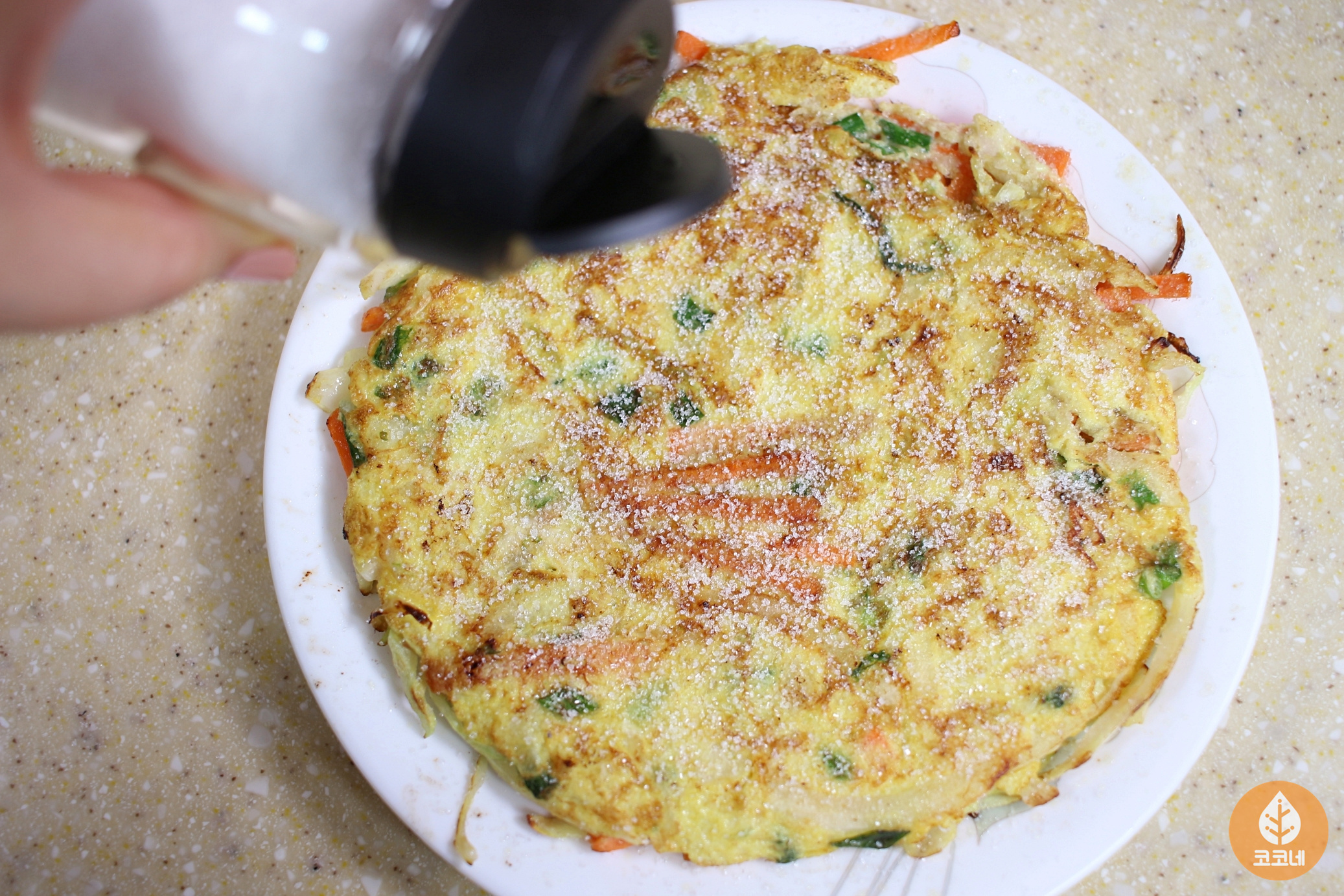 채소를 두툼하게 부치니까
