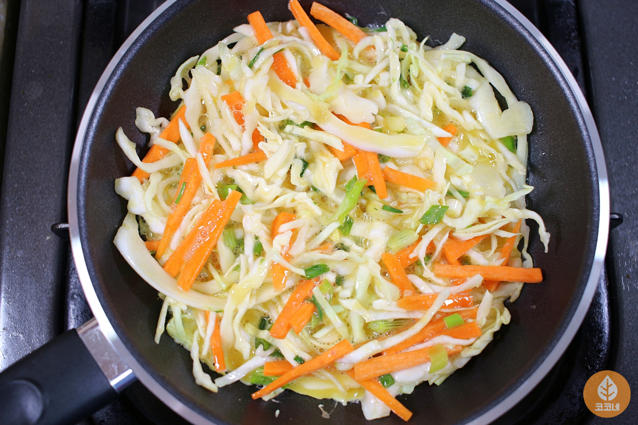 잘게 채 썬 양배추와 당근,