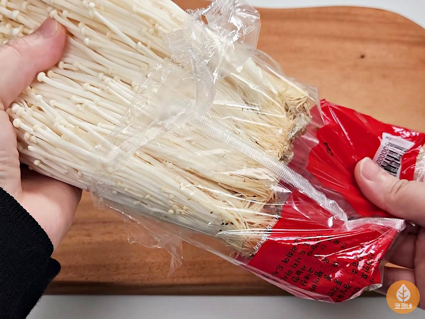 팽이버섯을 봉지에서 꺼내기 전에 멈춤!